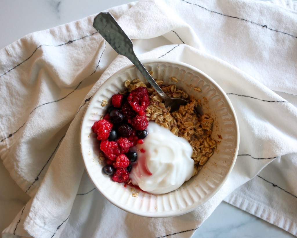 • Yogurt and milk both provide calcium and protein, essential for our skeletal and muscular systems. You can use whatever types work best for you, whether that’s dairy-free, lactose-free or regular!